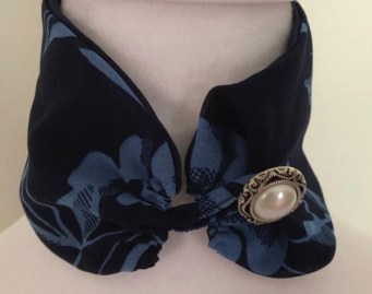 Blue/Black Flowered with Faux White Pearl
